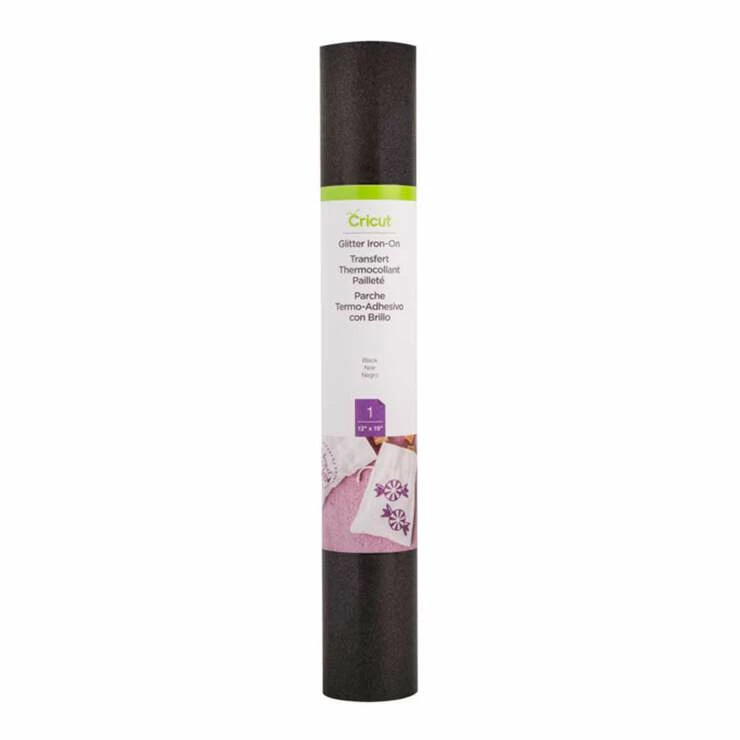 - 1 roll 12″ x 120″ black Glitter Iron-on (bulk packaging)