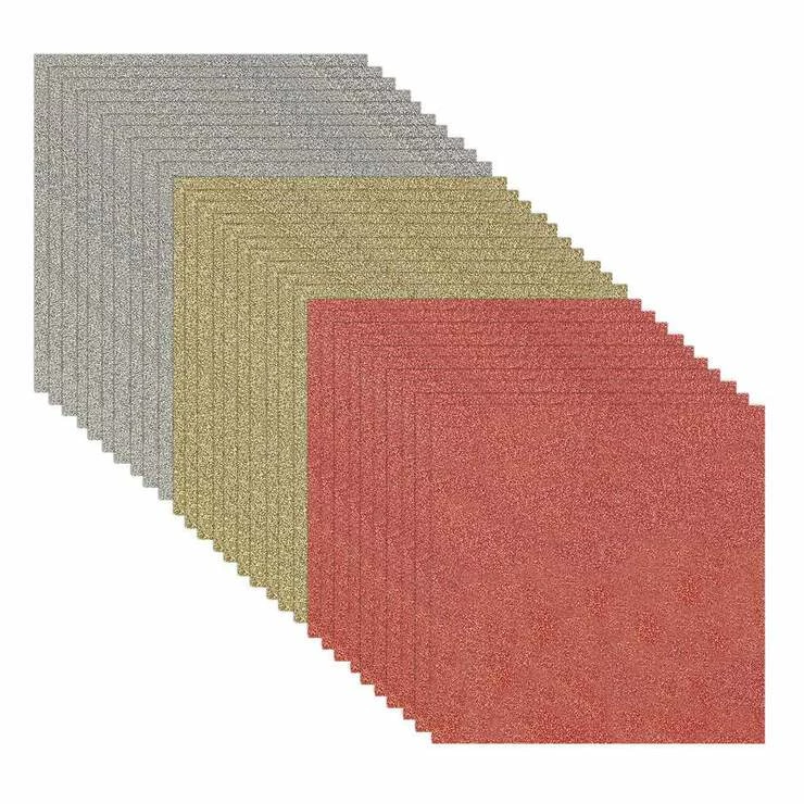 - 10 sheets of of each color Gold, Silver & Red 12″ x 12″