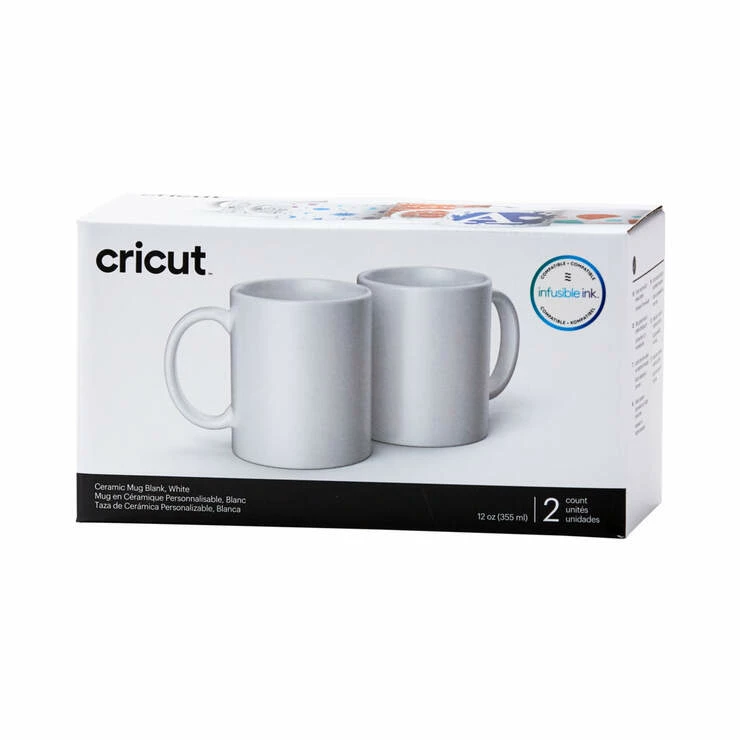 Make pro mugs in minutes. This set includes 2 premium blank mugs with a smooth ceramic finish and straight walls, for easy to achieve flawless transfers every time. Use Cricut Mug Press and Infusible Ink products to personalize with a name, logo, inside joke or favorite quote. Unlike an iron-on transfer or vinyl application, where artwork is attached to a base material using adhesive, your Infusible Ink heat transfer becomes one with the mug itself. The results are permanent, seamlessly smooth – and dishwasher & microwave safe.* Carefully follow instructions at cricut.com/make-mugs.