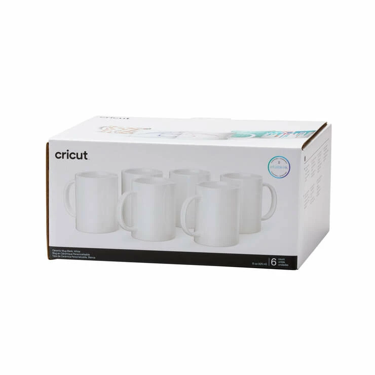 Make pro mugs in minutes. This set includes 6 premium blank mugs and 6 ready-to-gift boxes. With a smooth ceramic finish and straight walls, it’s easy to achieve flawless transfers every time. Use Cricut Mug Press and Infusible Ink products to personalize with a name, logo, inside joke or favorite quote. Unlike an iron-on transfer or vinyl application, where artwork is attached to a base material using adhesive, your Infusible Ink heat transfer becomes one with the mug itself. The results are permanent, seamlessly smooth – and dishwasher & microwave safe.* Carefully follow instructions at cricut.com/make-mugs.