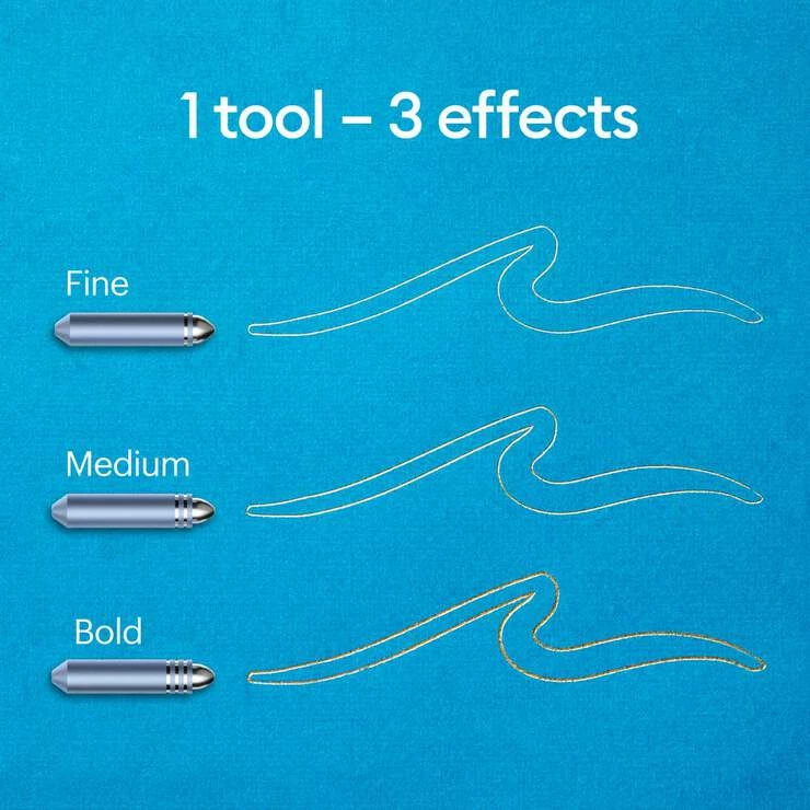 Make your projects shine with stunning foil accents – think cards, invitations, gift boxes & more. This unique, pressure-activated tool gives you pro-level, polished results that last. It’s 3 tools in 1 with interchangeable fine, medium & bold tips. With 12 Foil Transfer Sheets included, you’ll have everything you need to make like a master right out of the box. Just follow the Design Space® prompts, and when your Cricut Maker or Cricut Explore machine is done, peel to reveal the glimmer & gleam. Use with Cricut Foil Transfer Sheets, available in a striking array of colors. For more info, see cricut.com/help/foil-transfer.