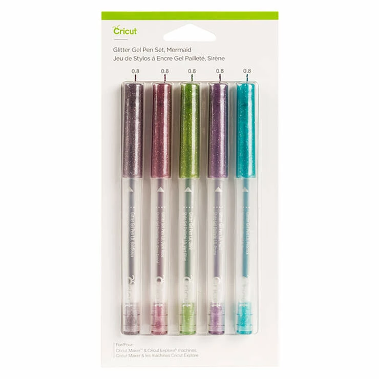 Make magical color part of your world. Add an extra-special touch to written or drawn projects with these five complementary hues. The eye-catching sparkle and silky gel enhance every project. Write flawless messages or phrases and draw intricate designs with a click. Add to cards, paper crafts, decor, and more, or draw perfect shapes and stunning coloring pages. They’re perfect for party and holiday invitations too. For use with Cricut Explore family and Cricut Maker cutting machines (Cricut Explore One requires the Accessory Adapter, sold separately).