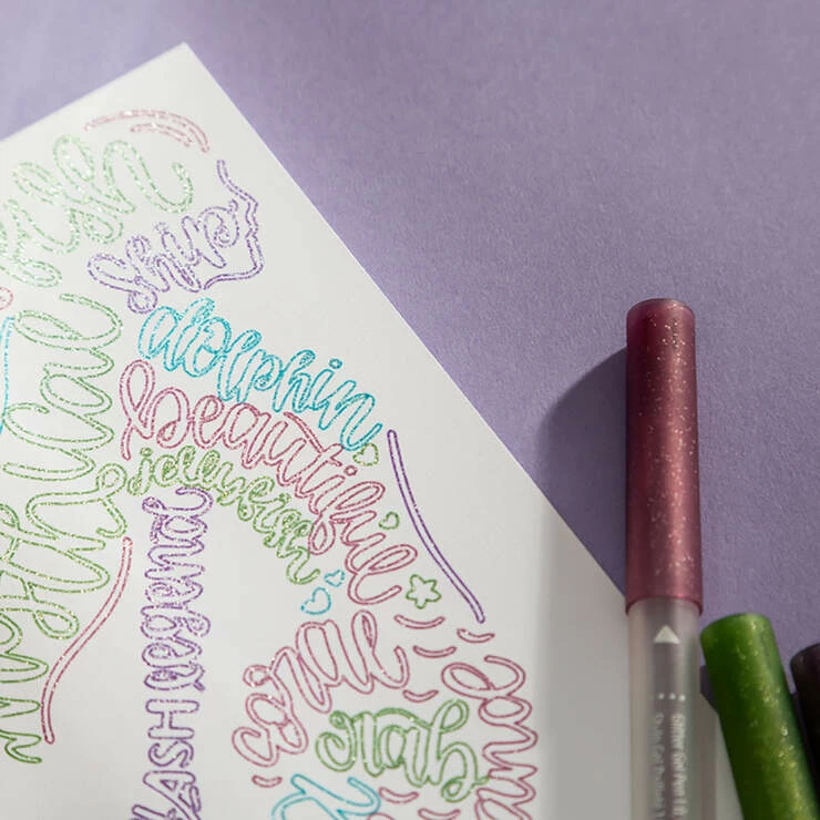 - Add an extra-special touch to written or drawn projects with glamorous glitter gel