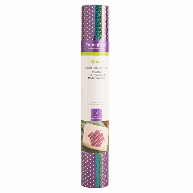 Adorn your handmade creations.Add a grid-like glittery effect to your projects with this extraordinary, shimmering heat-transfer vinyl. This is no ordinary heat-transfer material. Backed by our StrongBond™ Guarantee, it outlasts 50+ washes* and its stunning shimmer and shine will catch every eye that goes by. Transform a T-shirt, tea towel, or tote bag. Doll up a dress. Pretty up a pillow or fancy up a farmers’ market bag. For use with all Cricut cutting machines. For effortless application, use Cricut EasyPress®. Or apply with household iron.