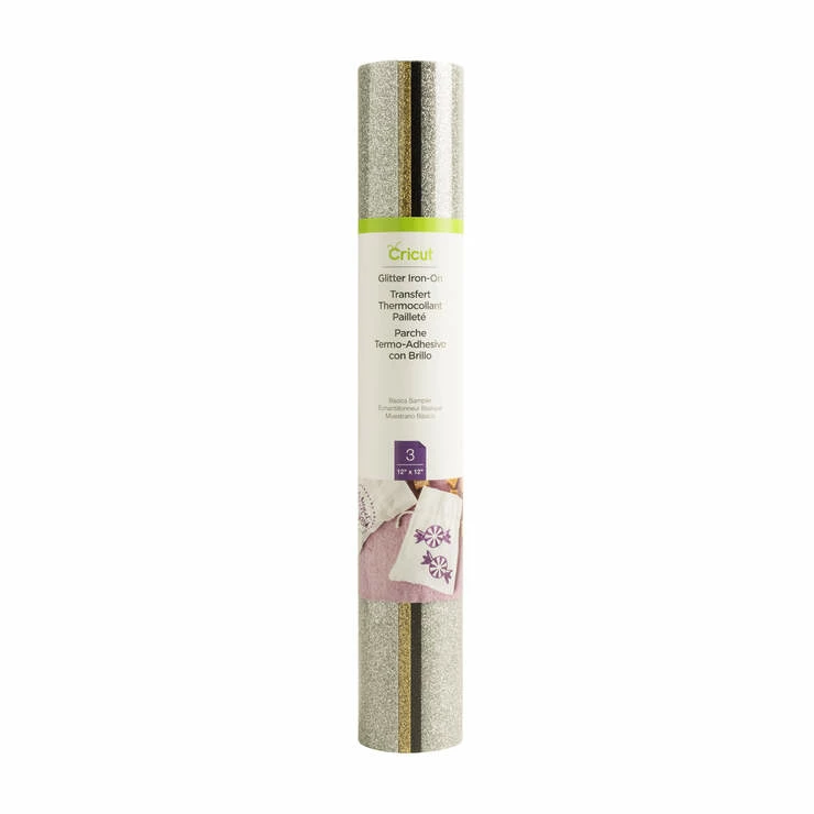 Add class to your iron-on project with a timeless trio of colors made even more amazing with glitter. This is no ordinary heat-transfer material. Backed by our StrongBond™ Guarantee, it outlasts 50+ washes* and its stunning shimmer and shine will catch every eye that goes by. Transform a T-shirt, tea towel, or tote bag. Doll up a dress. Pretty up a pillow or fancy up a farmers’ market bag. Instructions included. Use with all Cricut cutting machines. For a flawless iron-on application, use Cricut EasyPress™. Or apply with household iron.