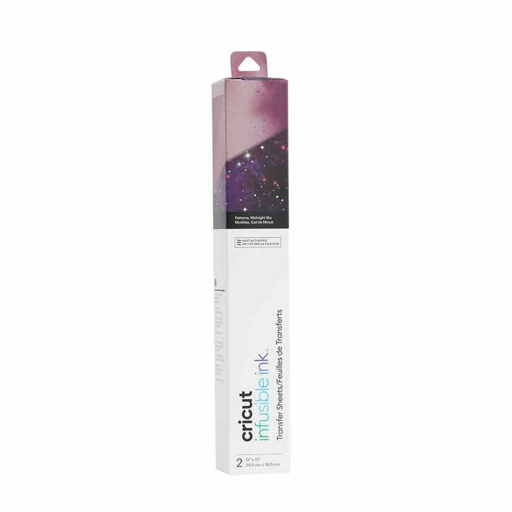 Reach for the midnight sky for dreamy DIY. Achieve professional-level, personalized transfers on T-shirts and more at home for the first time with these ready-to-cut sheets in a wide variety of complementary patterns. Use them with your Cricut Maker or Cricut Explore cutting machine to personalize any compatible Infusible Ink blank with a name, a logo, an inside joke, or a favorite quote! These pre-inked sheets bloom into rich, vivid hues once transferred using high temperatures. Combine with solid colors or mix and match with designs drawn using Infusible Ink Pens & Markers.