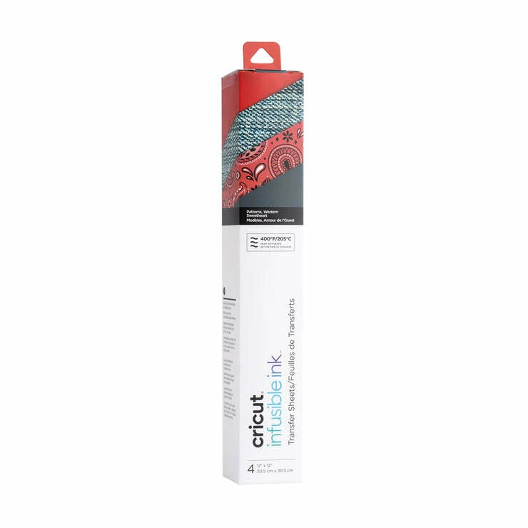 Give your next project western charm. Achieve professional-level, personalized transfers on T-shirts and more at home for the first time with these ready-to-cut sheets in a wide variety of complementary patterns. Use them with your Cricut Maker or Cricut Explore cutting machine to personalize any compatible Infusible Ink blank with a name, a logo, an inside joke, or a favorite quote! These pre-inked sheets bloom into rich, vivid hues once transferred using high temperatures. Combine with solid colors or mix and match with designs drawn using Infusible Ink Pens & Markers.