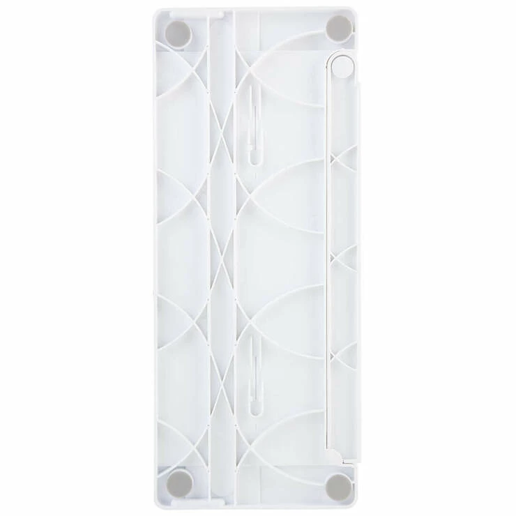 It’s a cinch to precisely cut straight lines when you use the 12″ (30.5 cm) Portable Trimmer. A unique easy-glide blade system yields precise, straight cuts every time, while an ergonomic, custom-fit handle provides a smooth grip over hundreds of cuts. The dual-hinged rail makes it simple to quickly load materials, measure, and cut from either side. Continuous measuring marks, rulers in inches and centimeters, and ¼” grid marks – along with a 15″ (38 cm) swing-out arm – help you measure for accurate results. Keep replacement blades in the convenient storage compartments on the underside of the trimmer.